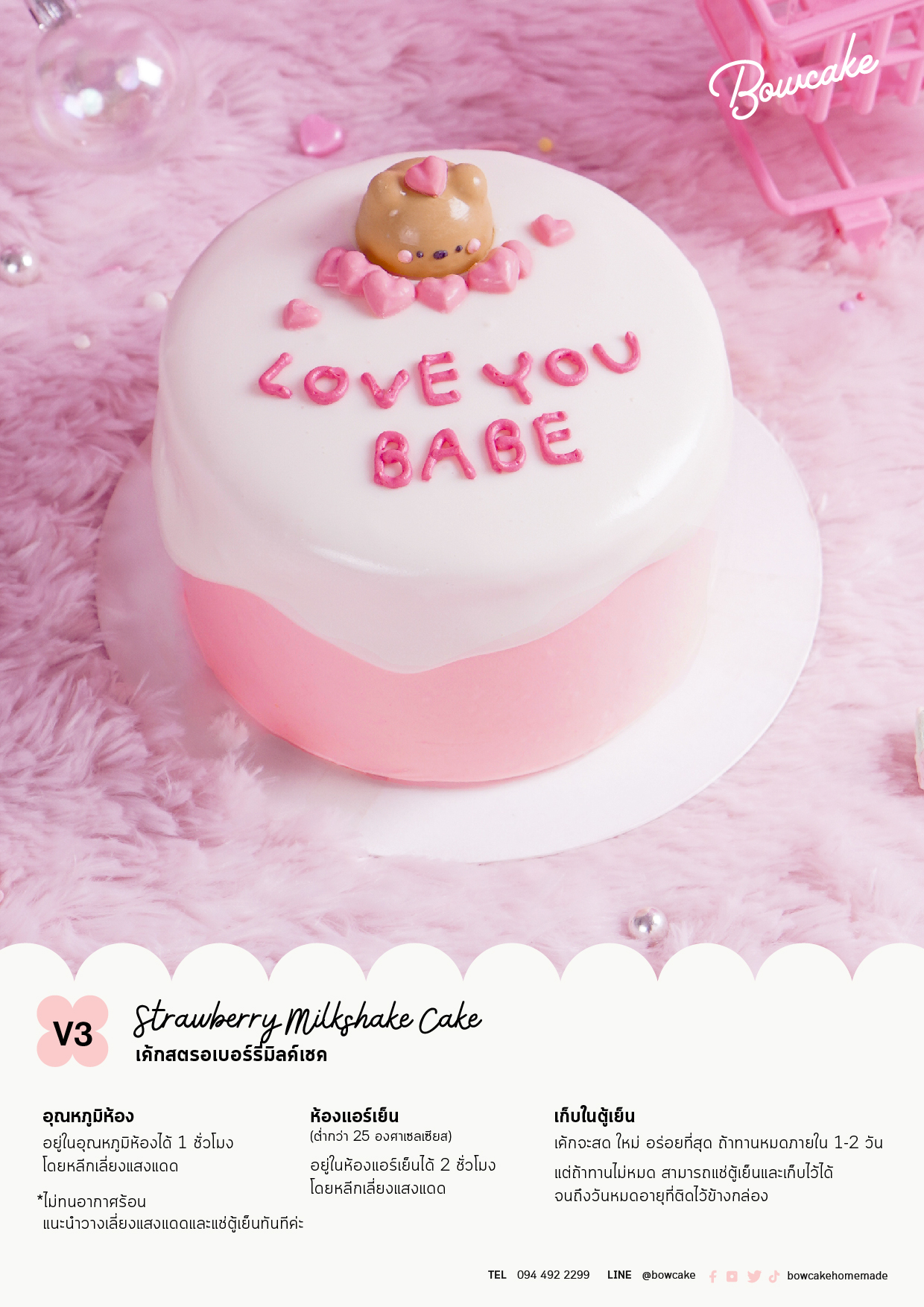 - เค้กอยู่ในห้องแอร์(ต่ำกว่า 25 องศาเซลเซียส) ได้ 2 ชั่วโมง โดยหลีกเลี่ยงแสงแดด หากเกินกว่านี้กรุณาเก็บรักษาในตู้เย็นช่องธรรมดา