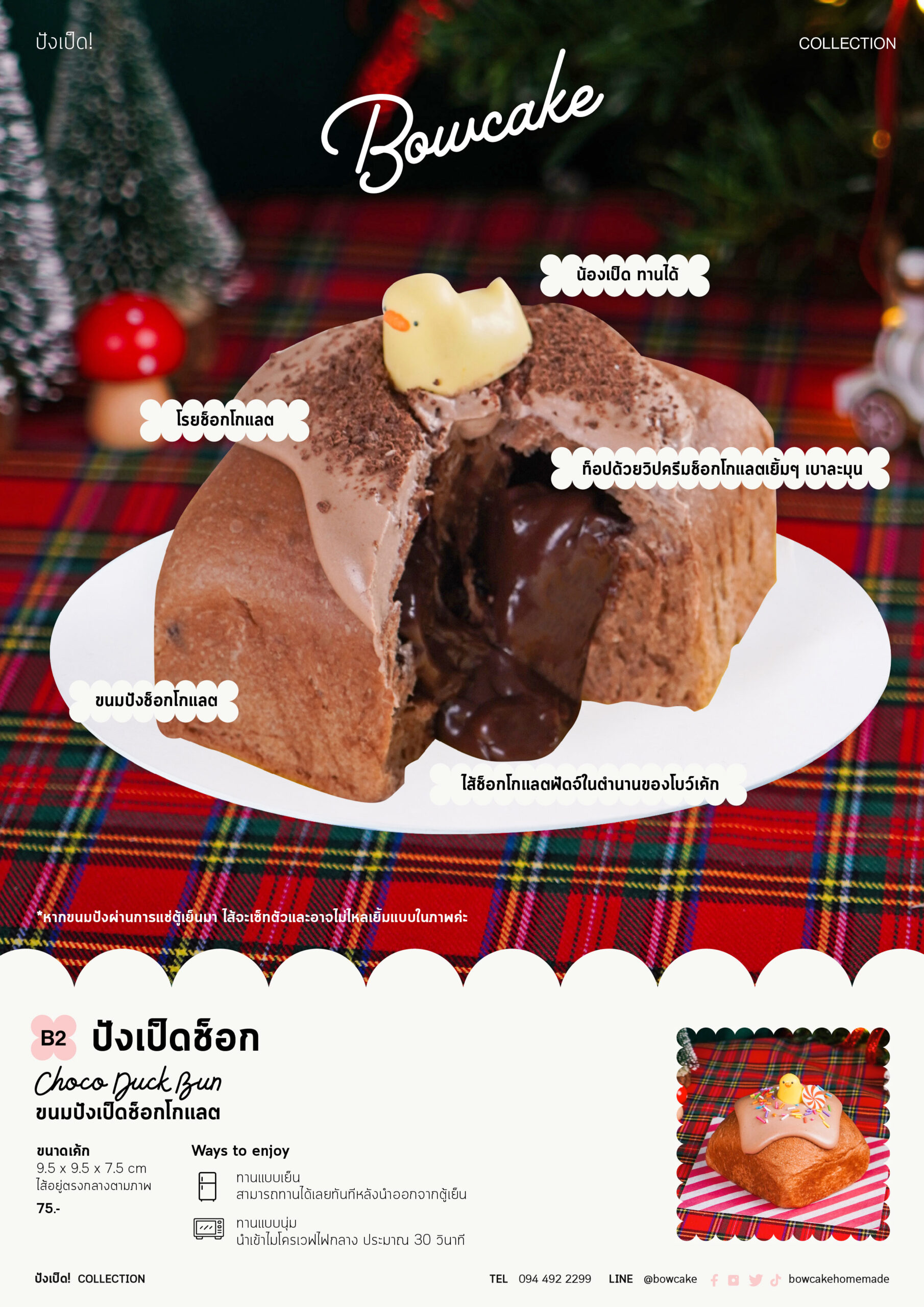 ขนมปังช็อกโกแลตนุ่มฟู สอดไส้ช็อกโกแลตฟัดจ์ในตำนานของโบว์เค้ก ท็อปด้วยวิปครีมช็อกโกแลตเยิ้มๆ แต่งหน้าด้วยน้องเป็ดทานได้ด้วยนะ ถูกใจสายช็อกแน่นอน~