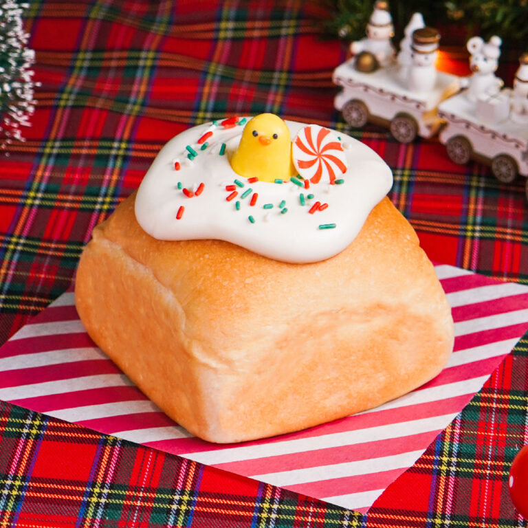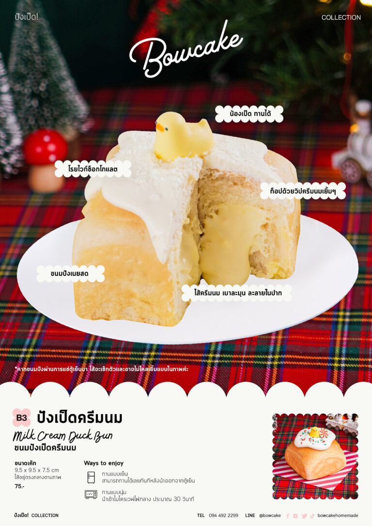 ขนมปังเนยสดเนื้อนุ่ม สอดไส้ครีมนมสด เบาละมุน ละลายในปาก ท็อปด้วยวิปครีมนมเยิ้มๆ โรยไวท์ช็อกโกแลตกรุบๆ แต่งหน้าด้วยน้องเป็ดทานได้ รสนี้คือนัวมากห้ามพลาดเลย