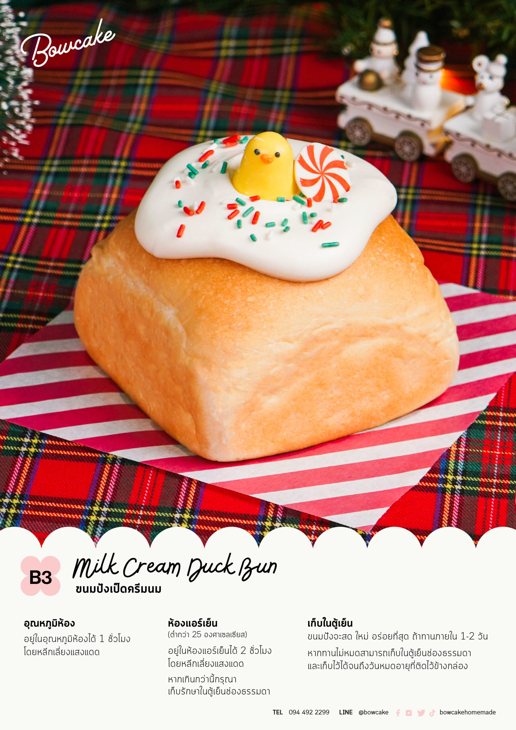 ขนมปังเนยสดเนื้อนุ่ม สอดไส้ครีมนมสด เบาละมุน ละลายในปาก ท็อปด้วยวิปครีมนมเยิ้มๆ โรยไวท์ช็อกโกแลตกรุบๆ แต่งหน้าด้วยน้องเป็ดทานได้ รสนี้คือนัวมากห้ามพลาดเลย