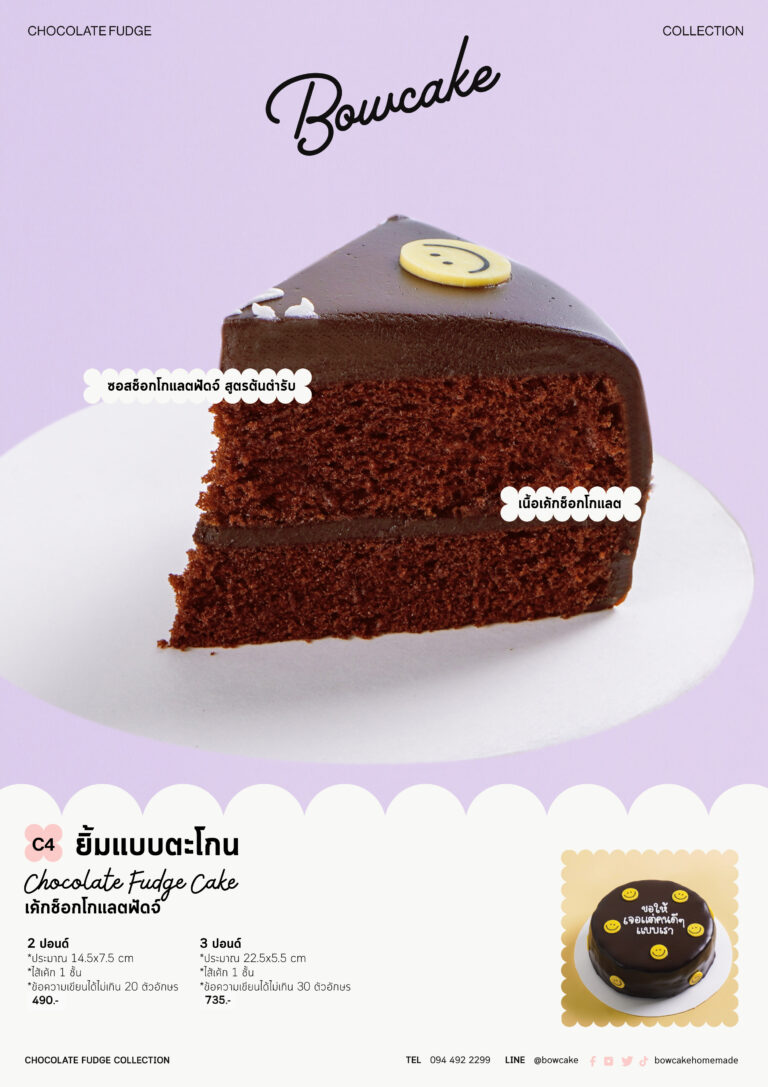 เค้กช็อกโกแลตหน้านิ่มในตำนานของโบว์เค้ก! สูตรต้นตำรับที่เราวางจำหน่ายมาตั้งแต่ปีค.ศ.1998 ความพิเศษอยู่ที่เนื้อเค้กช็อกโกแลตของเราจะมีความนุ่ม ฟู เบา แล้วราดด้วยซอสช็อกโกแลตฟัดจ์ร้อนๆ มีความหอมละมุนของโกโก้นำเข้าพิเศษจากประเทศฮอลแลนด์ เข้มข้นเต็มรสช็อกโกแลตสุดๆ